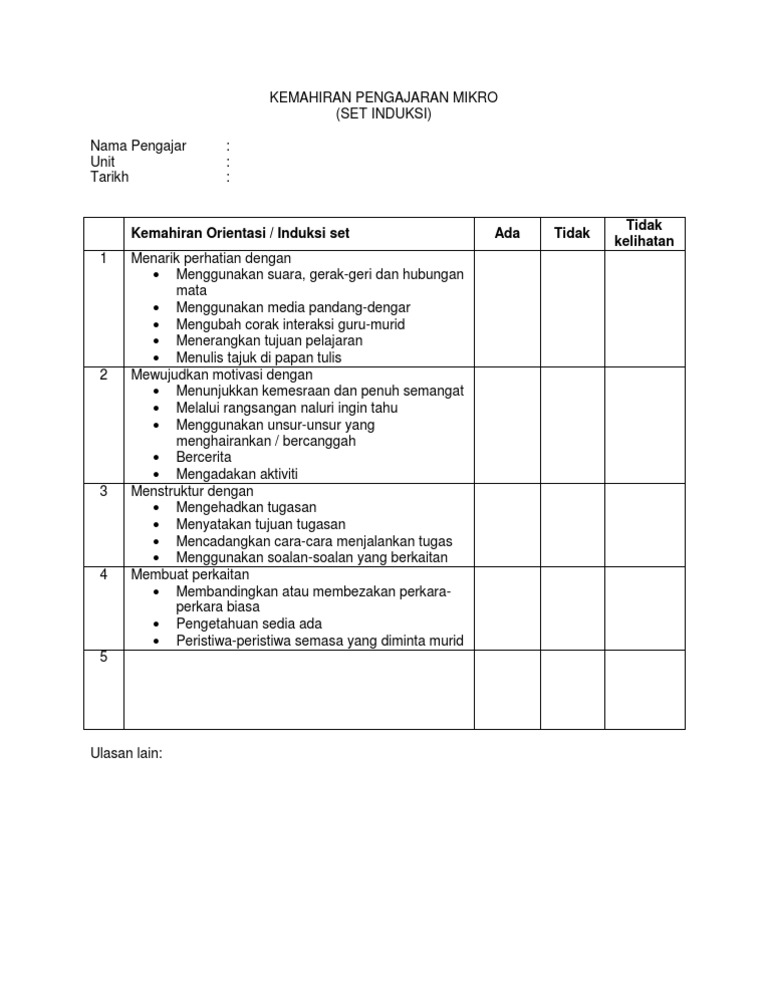 Contoh Borang Penilaian Induksi Set 1 Pdf