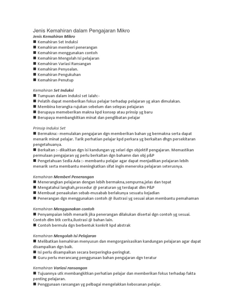 Jenis Kemahiran Dalam Pengajaran Mikro Pdf